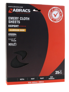 Industrial quality Emery sheets in handy, easy to use packaging. Premium quality aluminium oxide grain bonded to strong yet easy to tear J-weight cloth backing. Designed for general maintenance work, rust removal, sanding and polishing.
