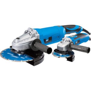 2 piece Angle Grinder set, consisting of one 230mm (9″) model and one 115mm (4 1/2″)model with a diamond blade to fit each item.