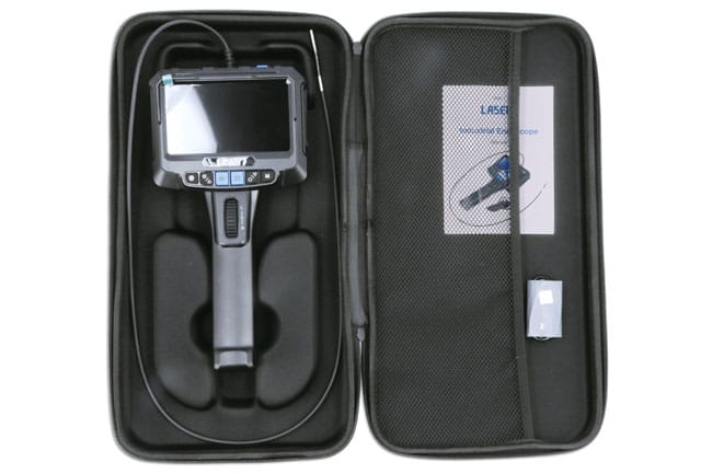 A professional grade endoscope with a 360-degree toggle function. The 3.9mm camera head can be moved through 360° to allow it to look back on itself – No need for delicate mirror attachments when looking at engine valve heads etc.