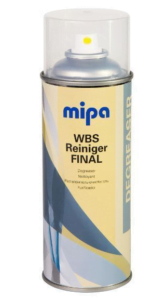 Highly efficient waterborne cleaning and de-greasing agent, that is mild in odour and provides an anti-static effect on plastic parts. Thanks to the special gentle formulation Mipa WBS Cleaner Final Spray is perfectly suitable as part of the cleaning and repair of headlights. The poly-carbonate lenses of the headlights will not be harmed or dissolved. Also ideal for preparation before plastic repair.