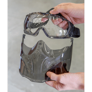 - Offers full face protection with an increased range of mobility compared to a standard face protector.