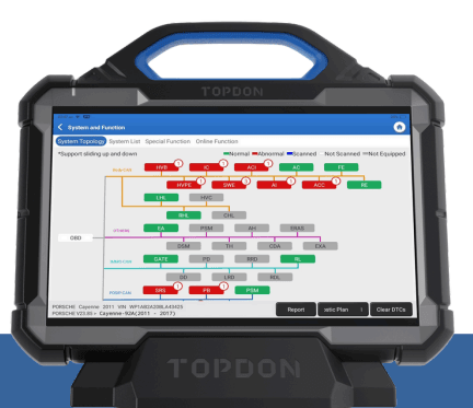 The Phoenix MAX Utilizes Topology mapping, displaying the entire vehicle system.