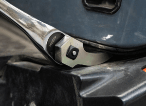 This specially designed tool allows a 1/2″ drive ratchet , breaker bar or extension bars, to be used as a pry bar or leverage tool. Its innovative design expands the versatility of your existing tools, offering a new approach to prying and leveraging in tight spaces.