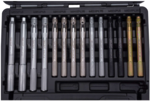 2 pieces of each size – M12 x 1.25, M12 x 1.5, M12 x 1.75, M14 x 1.25, M14 x 1.5, M16 x 1.5, M12 x 1.5 (female thread).
