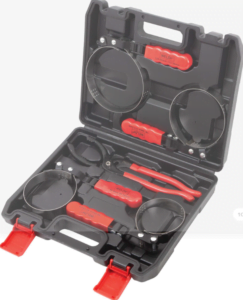 Swivel oil flter wrench and 12″ adjustable oil filter pliers.